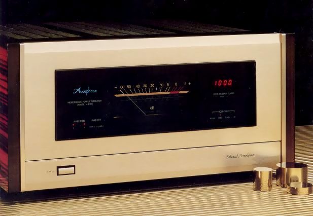 Accuphase M-1000 güç amplifikatörü. Üretim tarihi, 1981. Amplifikatör Kanal başı 1.000 watt güç üretebiliyor. Ağırlık ise 48kg. Amplifikatör dışarıdan son derece derli toplu gözüküyor. Ancak eğer internetten bakarsanız cihazın içerisi tam bir fabrika gibi. Kat kat devre levhaları, onlarca devasa kapasitör. Sanat eseri bir elektronik tasarım :)